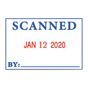 Self-inking message stamp features four interchangeable messages: Scanned, Emailed, Entered and Completed. Two-color pad for message and date. Ink colors: red and blue. Five-year date band. Perfect for office use.