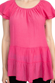 Elevate your everyday style with the Counterparts Scoop Neck Ruched Rayon Top, a versatile piece perfect for any occasion. This chic top features a flattering scoop neckline and feminine cap sleeves, adding a touch of elegance to your ensemble.