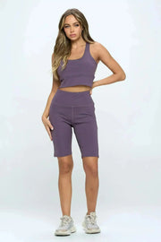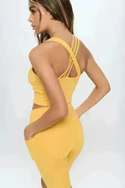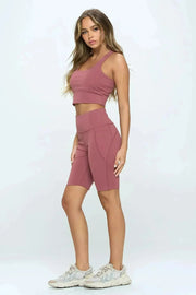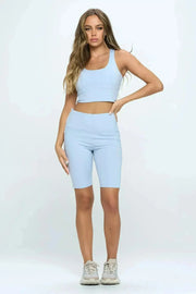 Crisscross Sports Bra & Biker Shorts Set High Stretch & High Waist