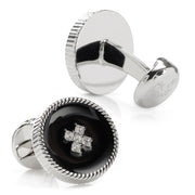 Adorned with white pave crystals on a black background, our Crystal Button Rope Cufflinks are designed in the likeness of an elegant button. The rope edge finishes off the sleek design and elevates your cuff, enhancing your wardrobe. The expert craftsmanship of our plated base metal cufflinks ensures long-lasting durability.