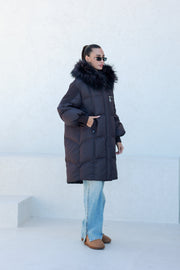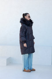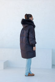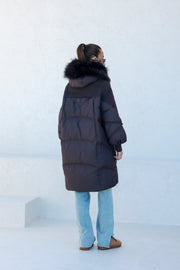 Dakota Genuine Fur Trim Down Fill Coat in Fig
