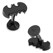 Even Bruce Wayne himself wouldn't be able to turn down sporting the Stainless Steel Carbon Fiber Batman Cufflinks, officially licensed by DC Comics. Black plated stainless steel outlines the carbon fiber die-cut in the shape of the iconic Batman logo, and the round swivel closure makes slipping them through your cuffs an ease. The black on black design makes for a truly polished and masculine look.