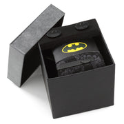 Bringing together some of our most popular Batman items, this stunning gift set contains our satin-finish black logo cufflinks and matching tie bar, and our 100% silk Batman Comic black tie. Find your inner Dark Knight and dress him for success. Officially licensed by DC Comics.