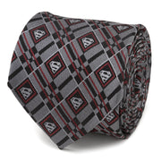 "Do good to others and every man can be a Superman." Made from 100% silk, this grey Superman tie features geometric shapes surrounding his signature "S" logo. Suit up with this tie and become the Superman of your office. Officially licensed by DC Comics.