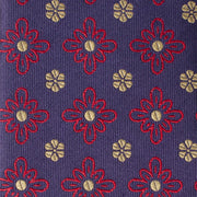Our Deep Purple Floral Men's Tie is the perfect blend of sophistication and elegance. Complimentary floral motifs, woven in a rich burgundy and gold dot pattern on a deep purple base, make a simple statement with a pop of color. Whether it's worn for a formal or casual event, this versatile accessory effortlessly adds a touch of class. Our tie will maintain its shape and hold a perfect knot thanks to the durable yet soft 100% Silk. Pair with our Flower Cufflinks to tie the look together.