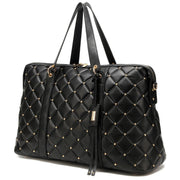 Diamond Quilted Vegan Leather Weekender Tote Bag