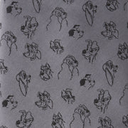 Who let the dogs out? This iron gray tie with black stitching features motifs of Disney's favorite dogs! From the Dalmatian pups and Dodger, all the way down to the Lady and the Tramp, this tie is a-dog-able. Officially licensed by Disney.