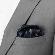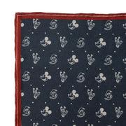 Mickey and Friends decorate this classy pocket square, designed in a play on a dot pattern. White icons of Mickey, Donald, and Pluto smile at you in rows offset by dots on a deep navy background to create a crisp look. The outer edge of burgundy compliments the rich navy. Experience enchantment with our expertly crafted 100% Silk pocket square. It's built to last, infused with Disney magic, and ready to accompany you on whimsical adventures. Officially licensed by Disney.