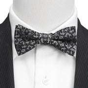 A simple gray and black pattern of Mickey Mouse silhouette motifs with tasteful damask swirls helps make our Mickey Mouse Damask Pattern Bow Tie an immediate fan favorite. It's subtle enough to wear every day, or to dress up for your next formal event. Experience enchantment with our expertly crafted 100% Silk bow tie. It's built to last, infused with Disney magic, and ready to accompany you on whimsical adventures. Add a touch of whimsy to your journey with this durable and intricately detailed bow tie. Officially licensed by Disney.