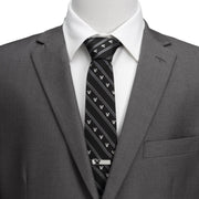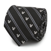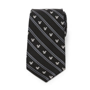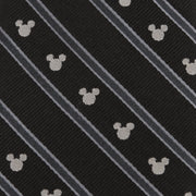 A great every day tie for the more mature Mickey Mouse fan, this 100% silk neck tie features diagonal stripes of contrasting black and charcoal gray shades, accompanied by tidy rows of silvery gray Mickey Mouse icons. It's about to become your new formal wardrobe essential. Officially licensed by Disney.