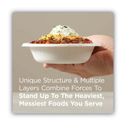 Moisture resistance, grease resistance and dry and wet rigidity make Dixie Ultra® Heavy-Weight Paper Bowls the right choice for the heaviest, messiest foods you serve. The unique structure and multi-layer coatings give these disposable paper bowls their strength, while the Soak-Proof Shield™ helps keep moisture and grease from leaking through. The Pathways® design matches other Dixie Ultra® plates, platters, bowls and cups to create an attractive, coordinated look. These heavy-duty paper bowls are ideal for foodservice and special events, and because they're microwaveable and cut-resistant, these small paper bowls come in handy in kitchens and breakrooms.