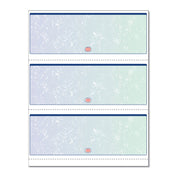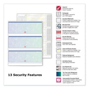 Incorporates security features recommended by the National Check Fraud Center. Compatible with most money management software programs. Security features include: Check-21 compliancy, "VOID" pantograph on the front and back, erasure-resistant background, security warning, anti-splice backer, security features listing, watermark, check verification number, patterned background and microtext print.