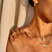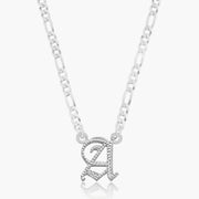 Our popular Double Plated Gotchic Initial Necklace boasts a chic and elegant design, handcrafted to perfection. The model showcases the necklace with a 16-inch Figaro chain (see first slide for reference).