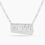 The Double Plated Luxe Block Nameplate makes a bold statement with its chunky 3D lettering, pavé sparkle, and layered gold finish. Designed to shine loud—this piece is all about power and presence.