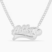 The Double Plated Sweetheart Script Nameplate showcases your name in elegant script with a bold heart detail, crafted in a two-layer gold finish for a personalized look full of charm and love.