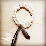 Double Strand GENUINE PEARL Bracelet With COPPER FEATHER 052d