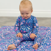 This blanket feels like a silky-soft cloud with two layers of Ecolux jersey surrounding a lining of polyester. Great for every nursery, toddler beds, and strollers. Great gift option!