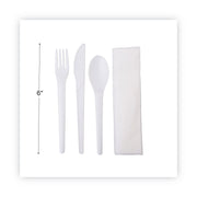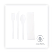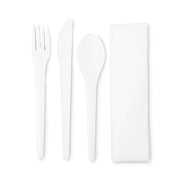 Eco-Products Plantware Compostable Cutlery Kit, Knife/Fork/Spoon/Napkin, 6", Pearl White, 250 Kits/Carton