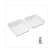 Eco-Products Renewable and Compostable Sugarcane Clamshells, 6 x 6 x 3, White, 50/Pack, 10 Packs/Carton