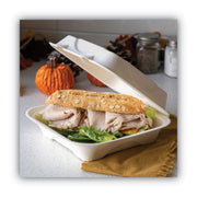Eco-Products Renewable and Compostable Sugarcane Clamshells, 9 x 9 x 3, White, 50/Pack, 4 Packs/Carton