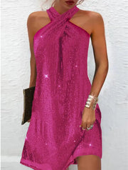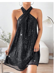 Crafted from high-quality polyester and adorned with dazzling sequins, this dress radiates glamour and elegance. The wide waist design ensures a comfortable fit, while the sleeveless style highlights your shoulders, making it a perfect choice for evening events or special gatherings.