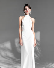 Elegant Haltered Hallowed Back Satin wedding dress thigh Split mini wedding dress