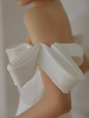 Elegant off the shoulder fit and flare duchess satin simple wedding dress colored wedding dress