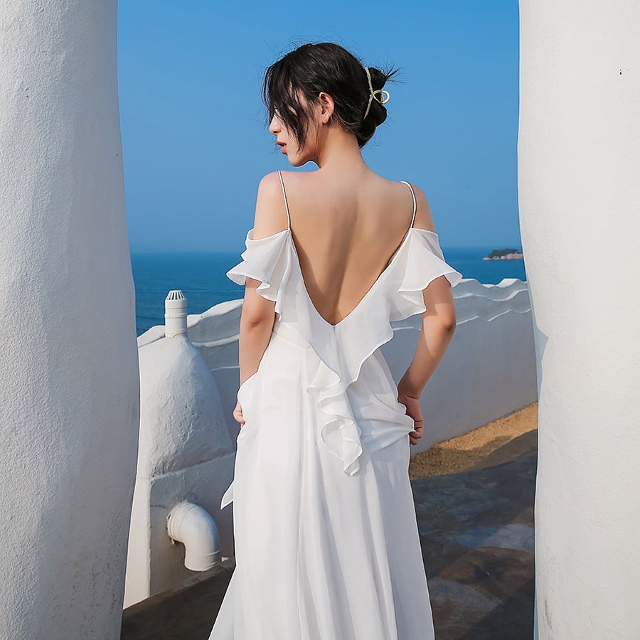Step into elegance with our stunning White Chiffon Dress, designed for the sophisticated woman who appreciates both style and comfort. This long skirt dress features a suspenders style and a chic hanging neck collar, making it perfect for a variety of occasions, from casual outings to formal events.