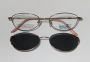 A set of optional sunglass clip-on lenses is included. Clip-ons are a convenient and affordable way for eyeglass users to shield their eyes from the sun's damaging rays and blinding glare. Clip-on sunglass lenses offer great flexibility for those who do not want to invest in two separate pairs of glasses. They clip on and off easily, usually with one hand.