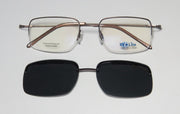 A set of optional sunglass clip-on lenses is included. Clip-ons are a convenient and affordable way for eyeglass users to shield their eyes from the sun's damaging rays and blinding glare. Clip-on sunglass lenses offer great flexibility for those who do not want to invest in two separate pairs of glasses. They clip on and off easily, usually with one hand.