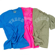 Embroidered Comfort Colors Tee - Teach - (Varsity Outline w/ White Thread)