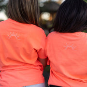 Embroidered Go Ahead and Live a Little / Printed Sunrise (on back) - Neon Tangerine Pocket Tee