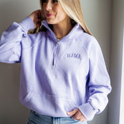Embroidered - MAMA Arched (Tone on Tone) - Purple Quarter Zip Fleece