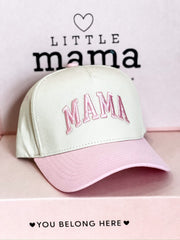 Embroidered Mama Hat | Natural Adjustable Cap with Pink or Blue Bill
