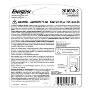 Energizer 2016 Lithium Coin Battery, 3 V, 2/Pack