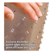 High-quality task chair mat is ideal for home and light office applications. Exclusive AnchorBar® cleats hold the mat firmly in place, yet are gentle on both your carpet and fingers. Straight edge.