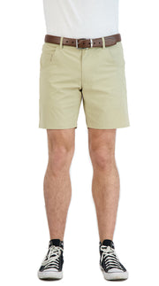 Everyday Stretch Shorts with a Comfortable Built-In Liner- Denim Style- Khaki