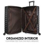 Discover the perfect travel companion with the ELLE Excursion collection. Designed for the adventurous traveler, this stylish and functional 3-piece set is crafted from durable polycarbonate and ABS, ensuring your belongings are protected on every journey. With its expandable capacity, you can fit more into your luggage without compromising on organization, thanks to the fully lined, zipper-separated compartments and a large mesh pocket.