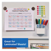Handy pen is designed specifically for marking on acetate films, such as overhead projector transparencies and laminated boards. Formulated for intense heat, the fade-proof ink dries quickly, without bubbles or cracks. Durable fine-point tip aids in the production of highly detailed graphics and legible text. Bold, bright colors help your ideas stand out. Marks wipe away easily with a damp cloth. Odorless Vis-à-Vis® products are an ideal choice for use in classrooms and small offices.