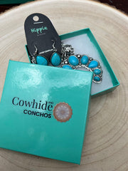 The matching earrings complement the pendant perfectly, making it an ideal accessory for rodeos, country gatherings, or everyday wear. Durable and stylish, this set brings classic Southwestern charm to your wardrobe with ease and comfort.