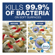 Soft surfaces that can’t be washed, such as mattresses and upholstered furniture, are harbors for harmful bacteria, mold and mildew. Febreze Professional Sanitizing Fabric Refresher gives you the same freshening power of Febreze plus the soft surface sanitization your environment needs. Proprietary technology goes to the source of odors and eliminates them. A light, fresh scent is left behind to leave the treated area smelling fresh and clean. Safe for virtually all fabrics. Spray soft surface until fully wet and the soft surface must remain wet for five minutes.