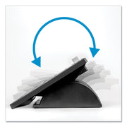 The Fellowes® Office Suites™ Adjustable Footrest supports your feet to help prevent back and leg discomfort and features new and improved Microban® antimicrobial protection to keep product cleaner. Tilt adjusts 30 degrees forward or back while the height adjusts to 4.13", 4.88", or 5.63". The locking mechanism either holds the footrest in preferred position or allows you to rock back and forth to encourage lower leg movement. No bending or stooping—footrest adjusts using only foot pressure.