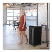 This shredder can automatically shred up to 550 sheets of paper with the touch of a button or manually shred up to 14 sheets into 397 (5/32" x 1 1/2"; Security Level P-4) cross-cut particles. This machine also safely shreds CDs/DVDs, credit cards, staples, paper clips and junk mail. It is equipped with AccuFeed™ Technology providing fast automatic shredding for increased productivity. Simply load the drawer, push the button and walk away. For jam prevention, this machine uses auto reverse technology which automatically stops and reverses the paper if a jam occurs. Also, the SilentShred™ Technology and energy saving sleep mode system allow this machine to integrate easily to any environment. With the ability to shred continuously, it is ideal for shared use and includes a 22-gallon removable basket.