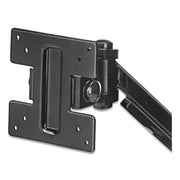 Elevates monitors to comfortable viewing height to prevent neck strain. Easy to mount – two piece clamp mounts monitor between desk and cubicle wall. Height adjustable arm moves up or down to five positions (1” increments each). Supports 21” flat panel monitors up to 20 lbs. Tilts up or down +/- 45°, pivots left to right 180°, and allows 360° screen rotation. Clamps to surfaces up to 2 ½” thick (2” desk overhang required) or mounts in grommet hole. Includes cord management system. VESA compliant.