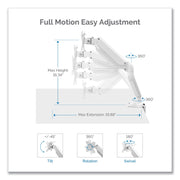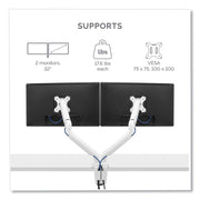 Fellowes Platinum Series Dual Monitor Arm, For 27" Monitors, 360 deg Rotation, 45 deg Tilt, 180 deg Pan, White, Supports 20 lb