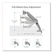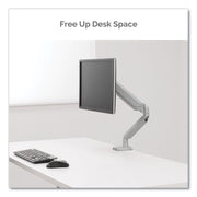 Fellowes Platinum Series Single Monitor Arm, For 27" Monitors, 360 deg Rotation, 45 deg Tilt, 180 deg Pan, Silver, Supports 20 lb