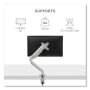 Increase valuable desk space and easily adjust your monitor to reduce eye, neck and shoulder strain. Easily connect your favorite devices with 2 USB ports conveniently located at the base of the product. Easy and effortless monitor adjustment with innovative gas spring technology. Adjustable arm easily lifts monitor up and down through a 15" height range. Easy to mount via clamp or grommet. Minimize clutter with the intuitive cord management system. Holds a monitor up to 30"/20 lbs.