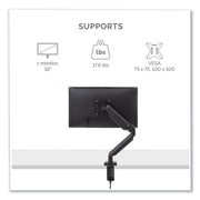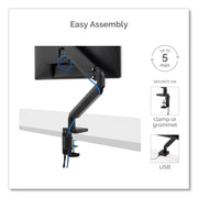 Increase valuable desk space and easily adjust your monitor to reduce eye, neck and shoulder strain. Easily connect your favorite devices with 2 USB ports conveniently located at the base of the product. Easy and effortless monitor adjustment with innovative gas spring technology. Adjustable arm easily lifts monitor up and down through a 15" height range. Easy to mount via clamp or grommet. Minimize clutter with the intuitive cord management system. Holds a monitor up to 30"/20 lbs.