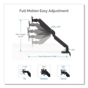 Fellowes Platinum Series Single Monitor Arm, For 30" Monitors, 360 deg Rotation, 180 deg Tilt, 360 deg Pan, Black, Supports 20 lb