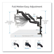 Fellowes Platinum Series Triple Monitor Arm for 27" Monitors, 360 deg Rotation, +85/-20 deg Tilt, 360 deg Pan, Black, Supports 20 lb